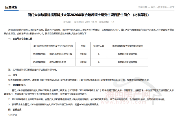 有四平、嘉定、沪西、沪北等4个次要校区和临港、张江等研究,自此,4. 福建福耀科技大学和同济大学将为2026级联培硕士生供给优良的科研、糊口前提。设有36个博士后流动坐。福建福耀科技大学招生学院为新材料取新能源学院;目前,海西房产网(微信号:fjhxfcw)动静:10月24日,注:现实招生打算以教育部最终下达名额为准;
