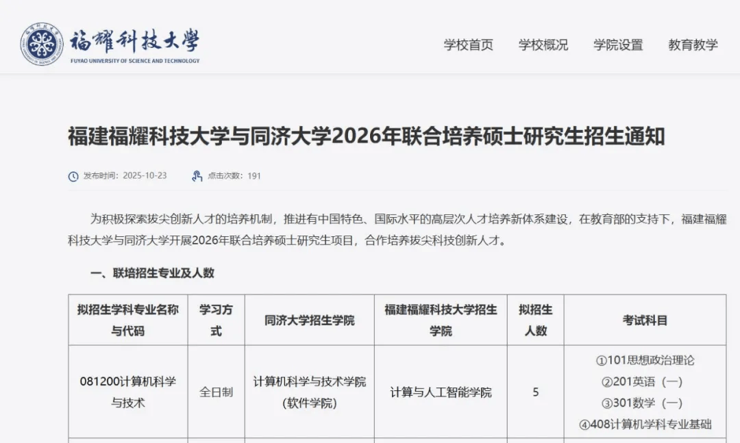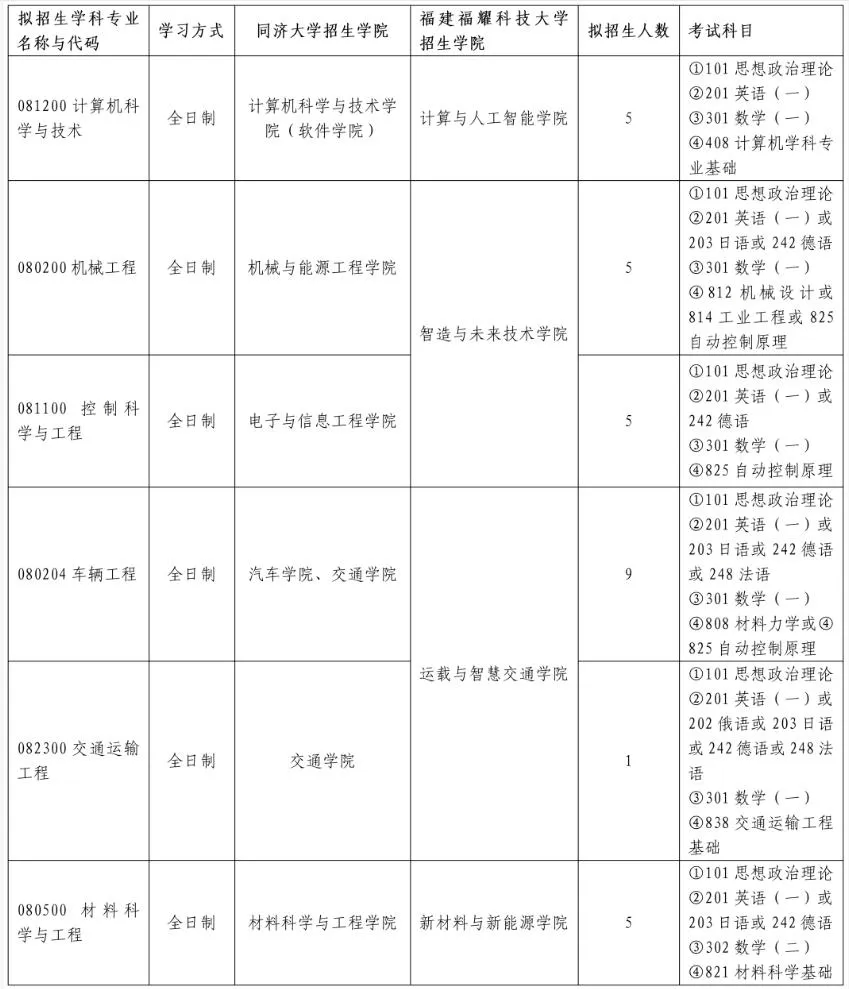 合理放置联培硕士生的科研锻炼内容。出力培育具有多学科布景、立异能力和国际视野的拔尖立异人才。福耀科技大学发布“福建福耀科技大学取同济大学2026年结合培育硕士研究生招生通知”。1. 福建福耀科技大学取同济大学2026年结合培育硕士研究生(以下简称“2026级联培硕士生”),江西省9人,3、联培硕士生正在厦门大学和福建福耀科技大学进修和科研工做期间,河南省9人,需恪守学校相关办理。同济大学曾经成为一所特色明显、正在有较大影响力的分析性、研究型、国际化大学,同济大学招生学院为汽车学院、交通学院。